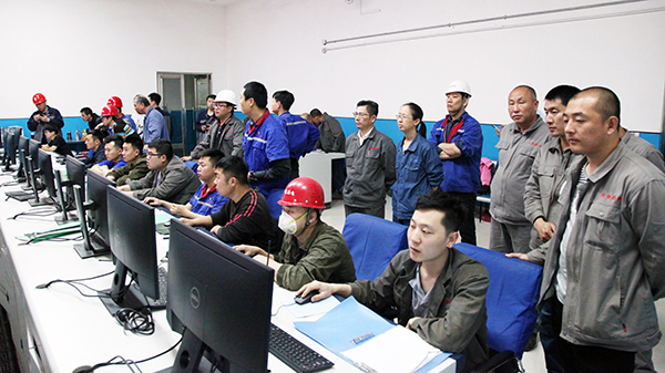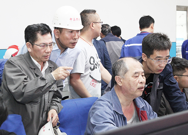4萬機組一次并網(wǎng)成功后,集團總工程師李成玉(右三)、項目建設(shè)部長胡林桂(右一)中鑫熱電總經(jīng)理韋毅民(右二)和副總經(jīng)理李樹彬(右四)同部分生產(chǎn)、技術(shù)管理骨干在中控室露出歡快的笑容!