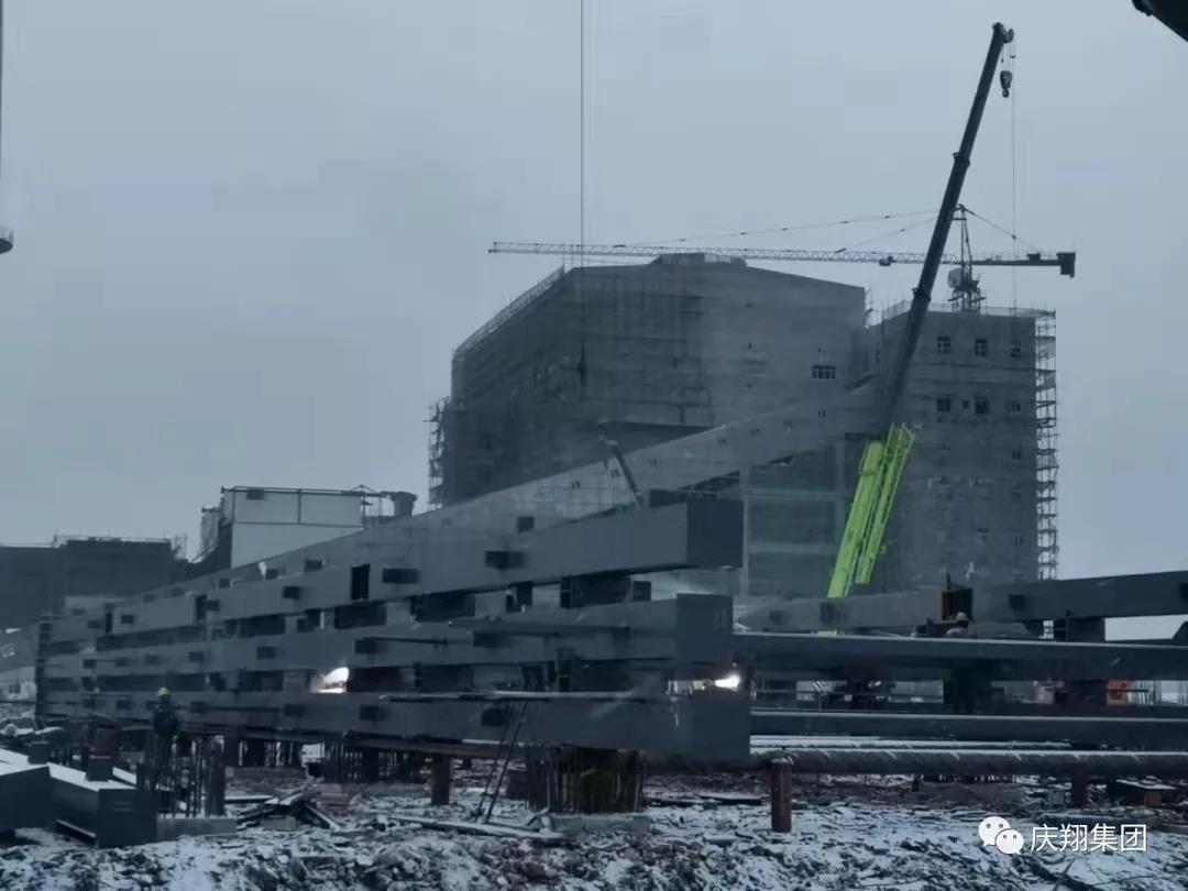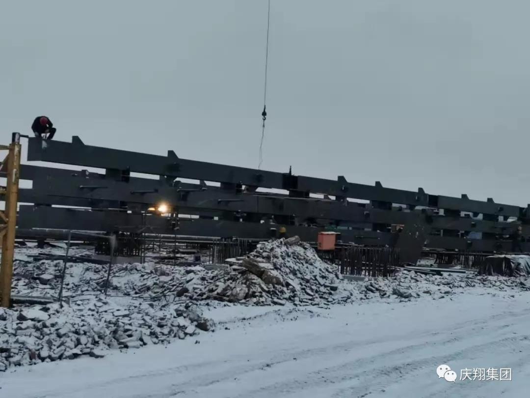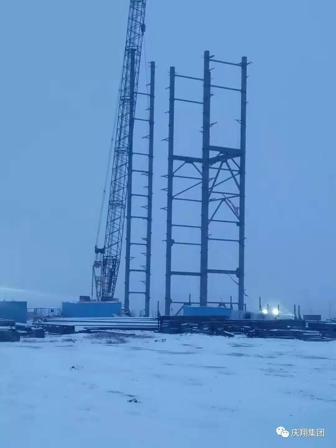 (肇東項(xiàng)目部雪中連夜立鋼架)